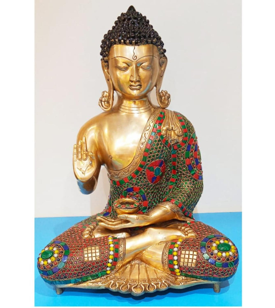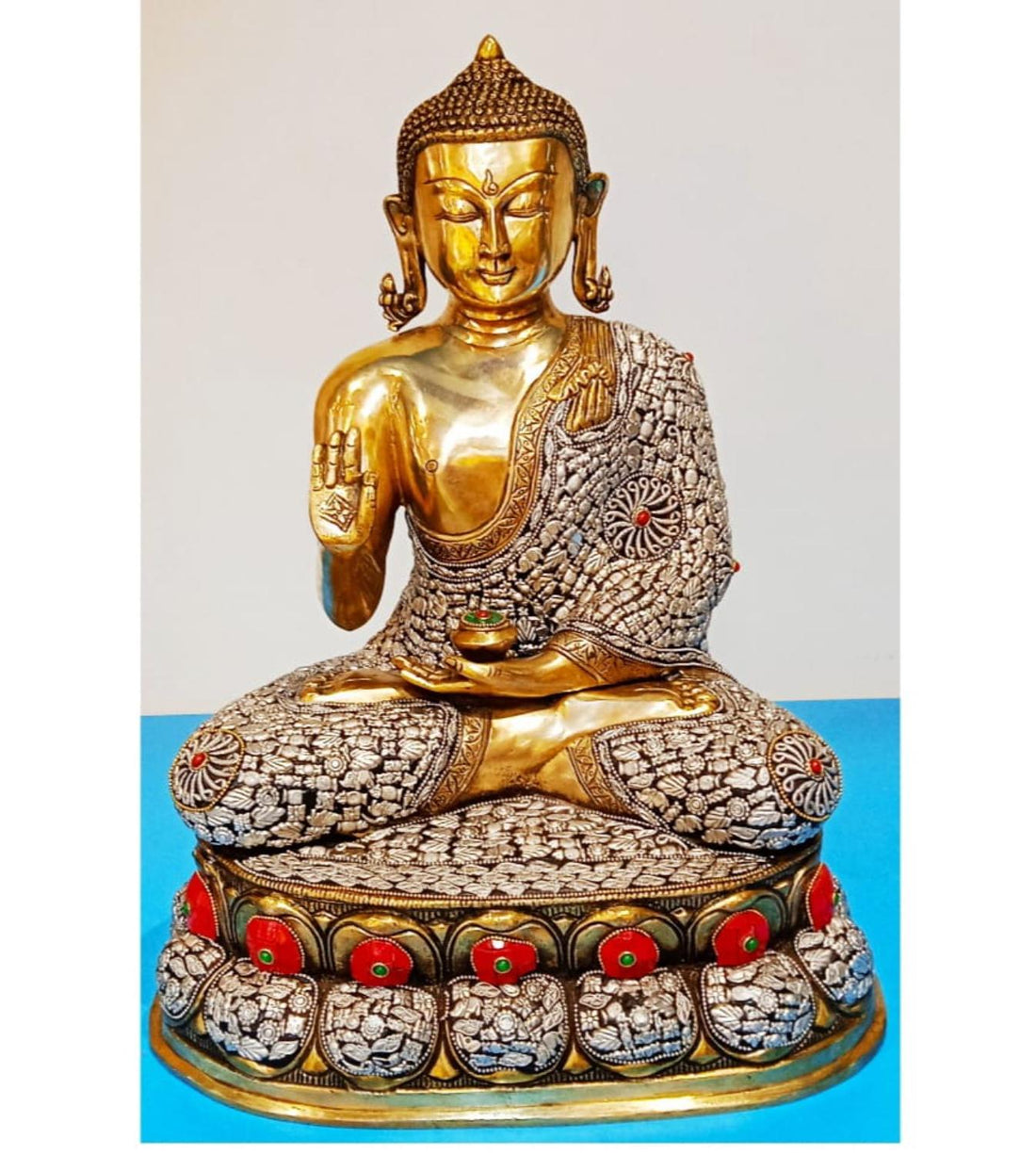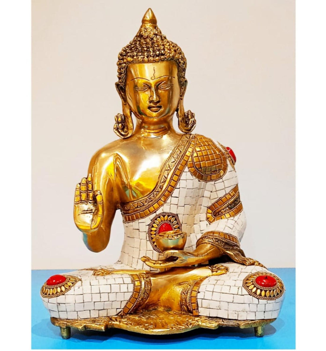Experience tranquility and elegance with our White Stone Buddha. Handcrafted from brass & studded with...