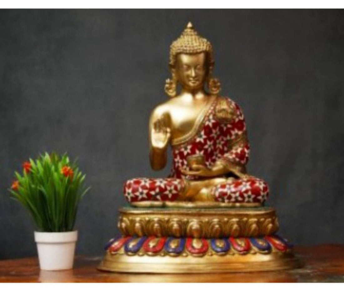 Introducing the exquisite 3 Tone Buddha On Pedestal. This handcrafted masterpiece features a stunning three-tone...
