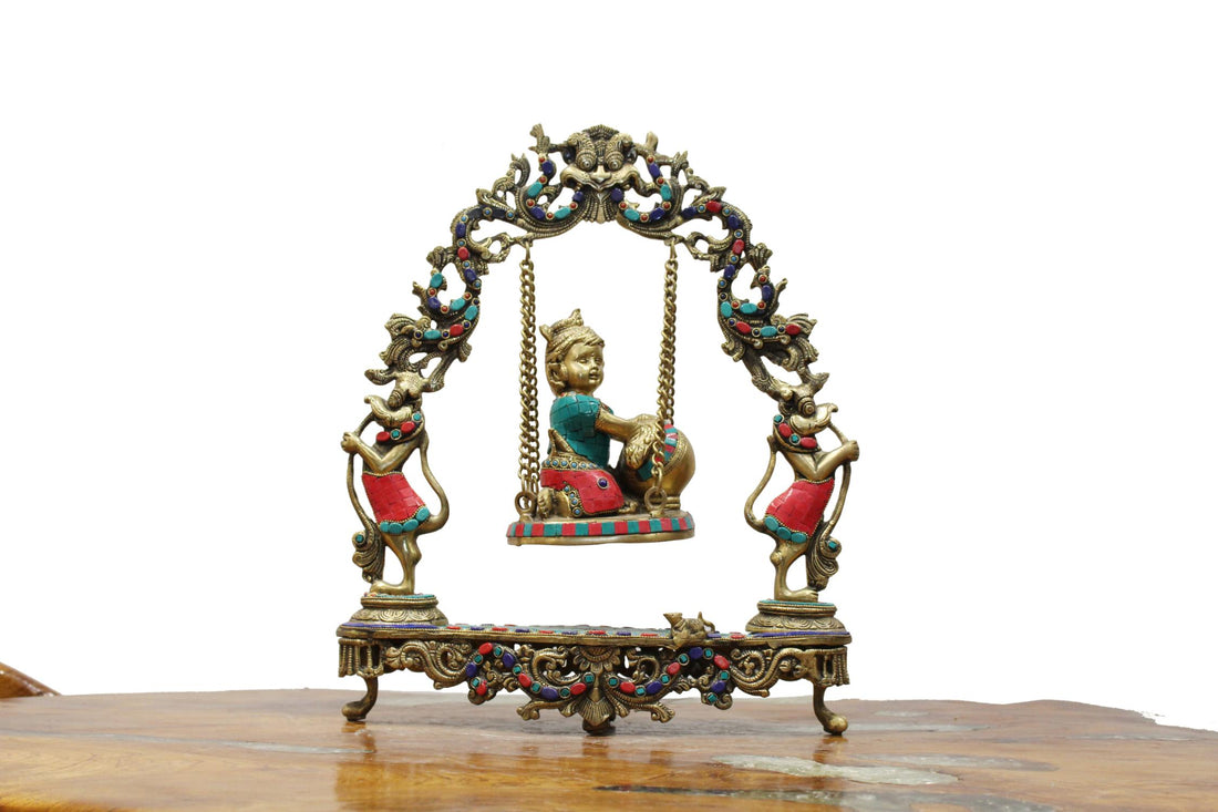 Invite divine play into your home with Balgopal On Swing. This exquisite piece features the...