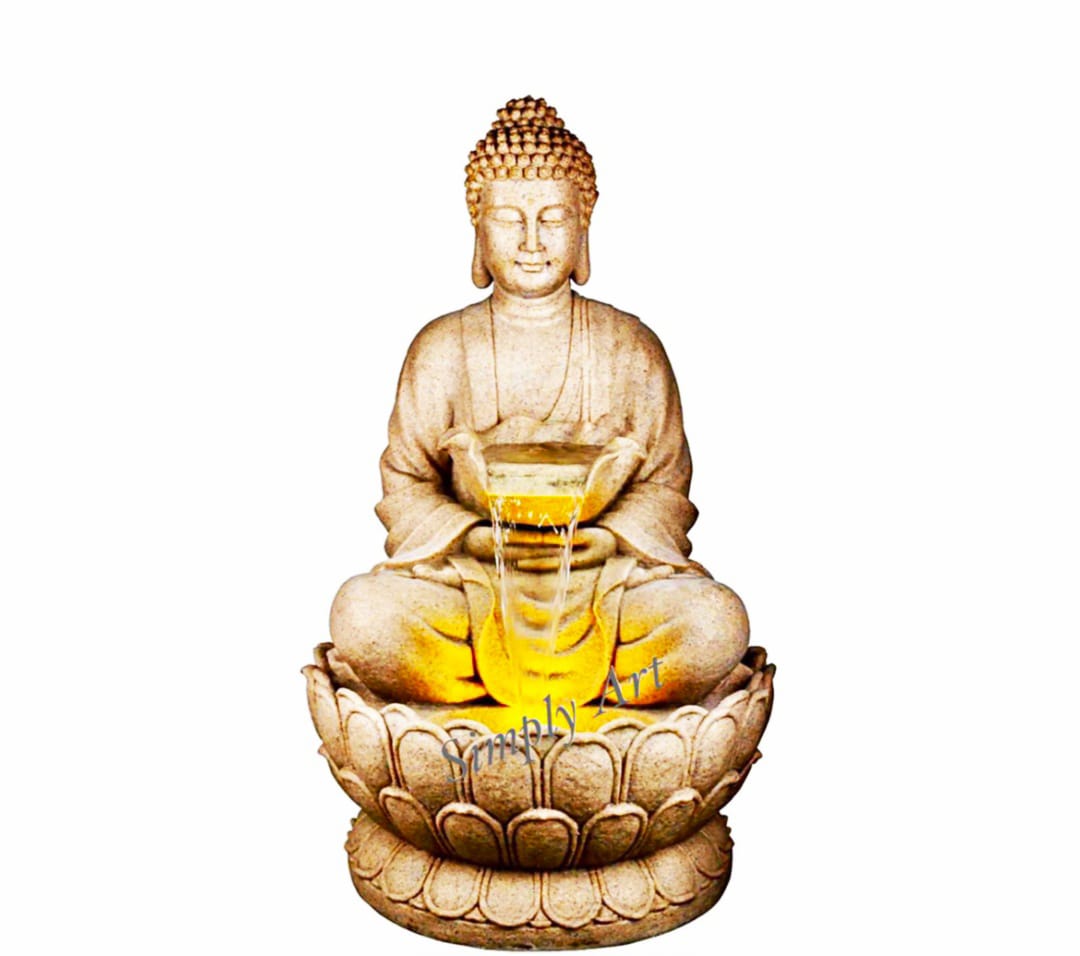 Behold the serene elegance of Buddha On Lotus. This exquisite water fountain is a masterpiece,...