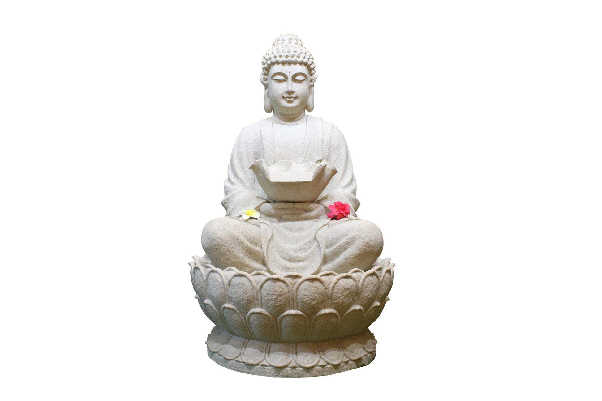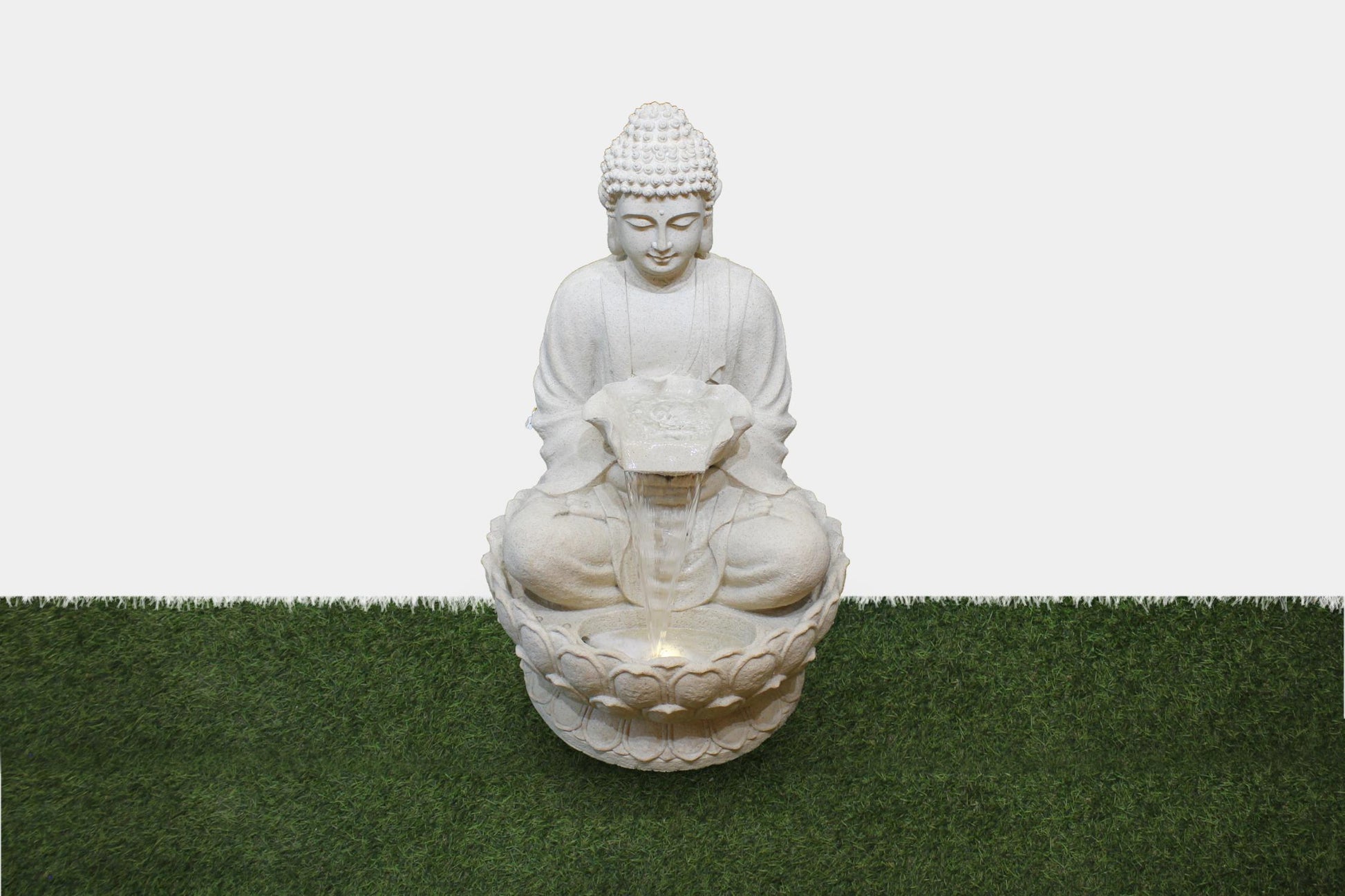 Enhance your space with tranquility and sophistication with our Buddha On Lotus water fountain. The detailed sculpture and gentle flowing water will bring a sense of peace and balance to any room. Elevate your home décor and create a serene atmosphere with our premium fountain.
