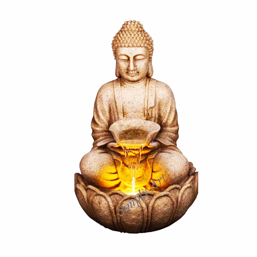 Elevate your space with the peaceful presence of our Buddha On Lotus water fountain. Crafted with intricate details, this small size fountain brings a sense of tranquility and beauty to any room. Let the flowing water create a calming ambiance, while the Buddha on lotus symbolizes peace and enlightenment.