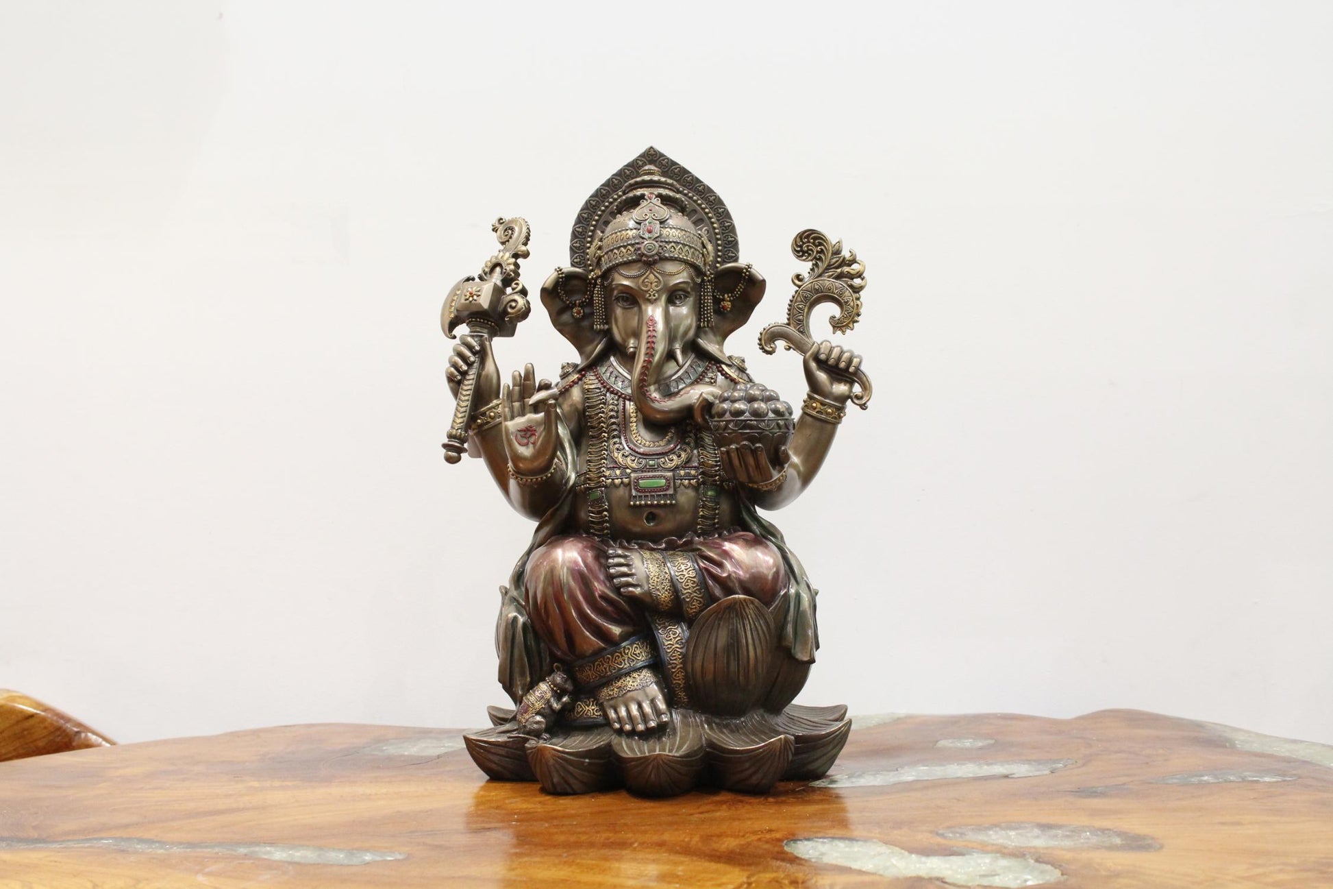 Elevating any space with divine beauty, discover the intricate and graceful Ganesha mounted atop a majestic lotus.