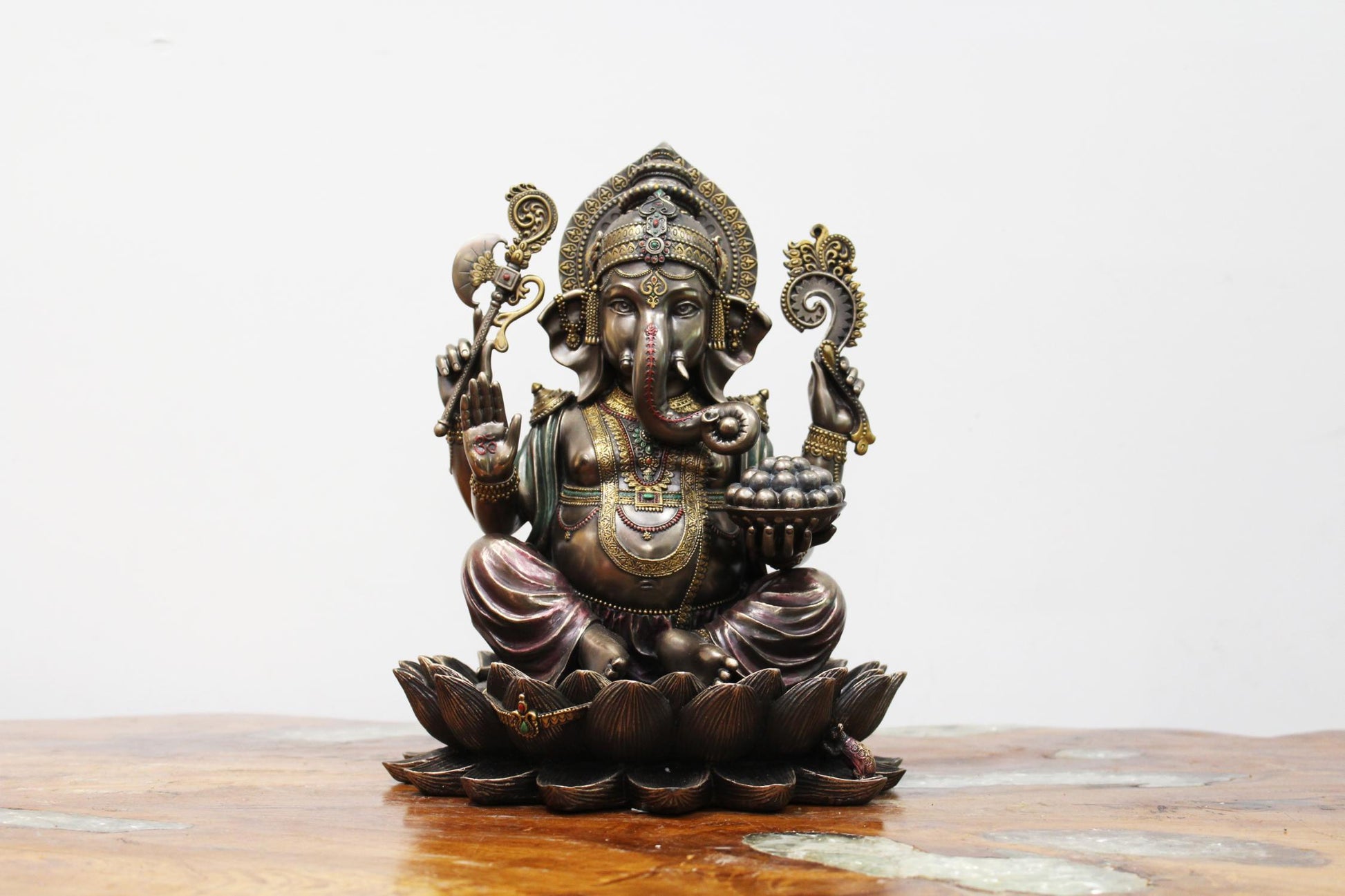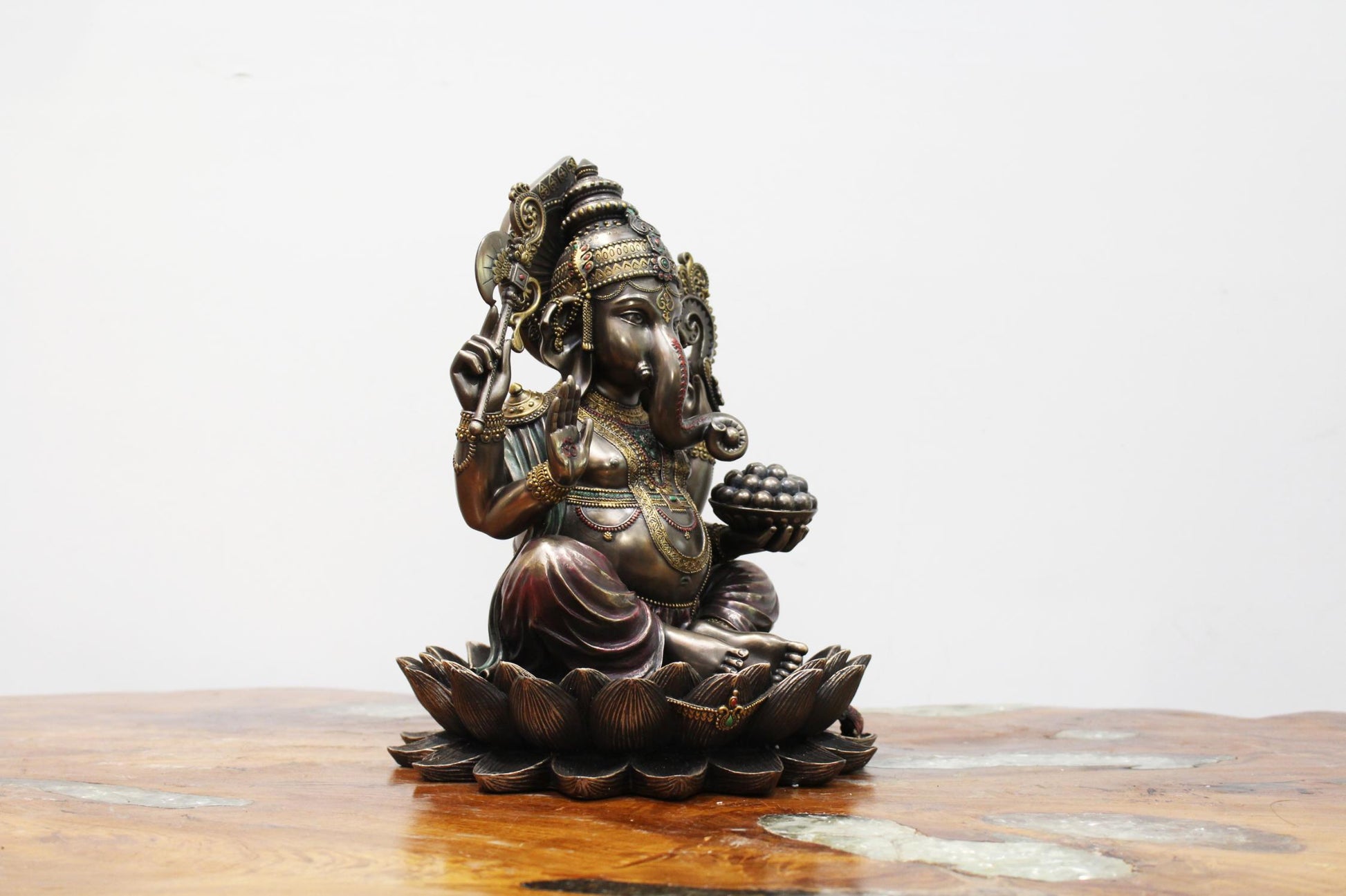 Experience the captivating beauty of Ganesha resting upon a delicate lotus in its small form.