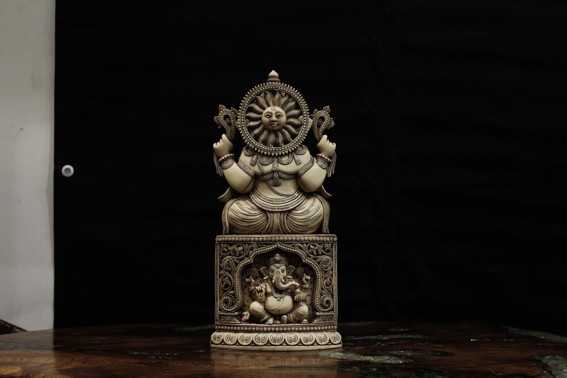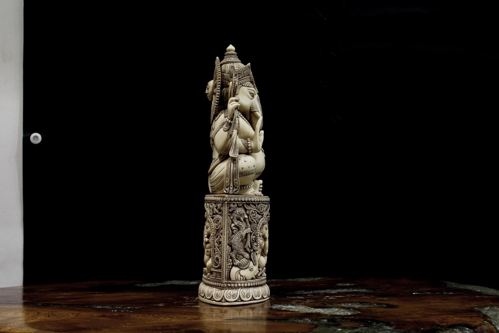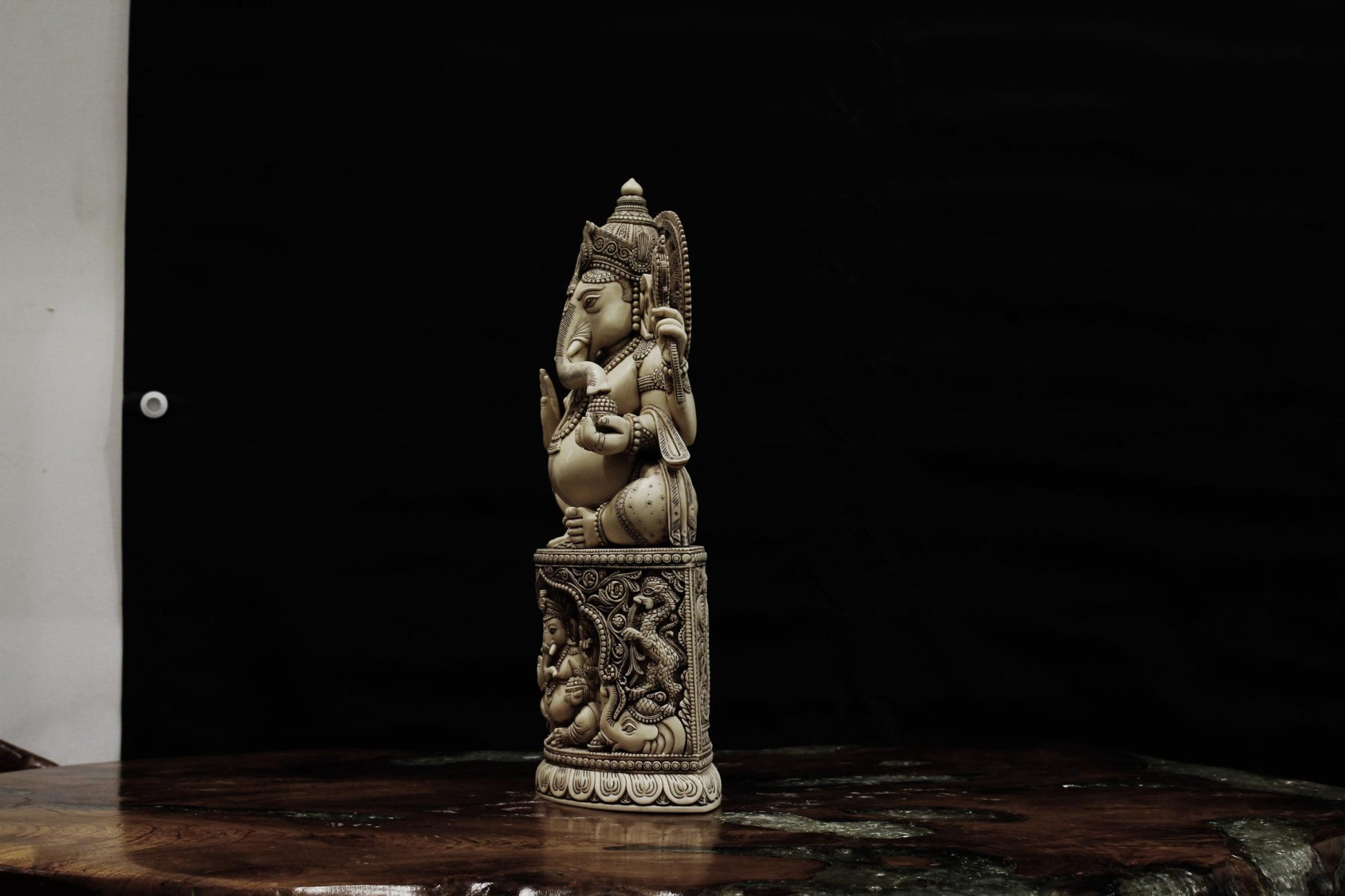 Embrace tranquility and wisdom with our Ganesha on Pedestal. This exquisite piece features the revered deity on a beautifully crafted pedestal, adding a touch of elegance to any space. Invite blessings and prosperity into your home with this stunning piece of art.
