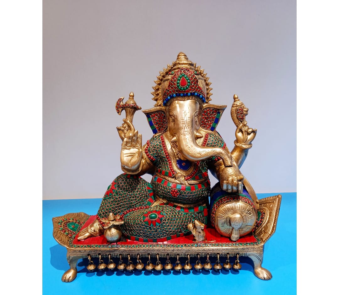 Introducing the exquisite Ganesha On Throne sculpture. Featuring the divine Ganesha seated elegantly on his ornate throne, this piece exudes an air of opulence and grace. A perfect addition to any luxurious space, this artwork is sure to make a statement and elevate your decor to new heights.
