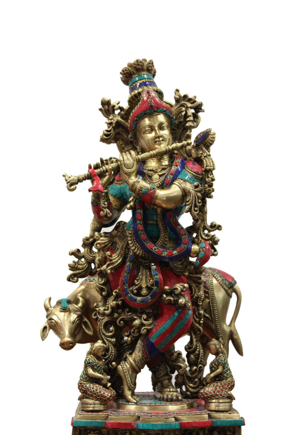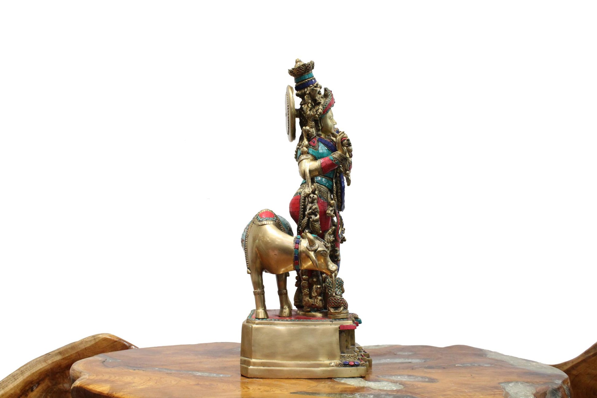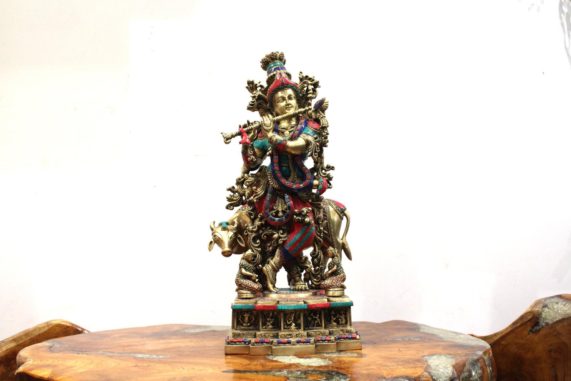 Experience the divine with our Krishna On Cow statue. Handcrafted with intricate details, this piece exudes elegance and sophistication. Place it in your home or office for a touch of spiritual luxury. Let Krishna and cow symbolize peace, prosperity, and protection in your space.