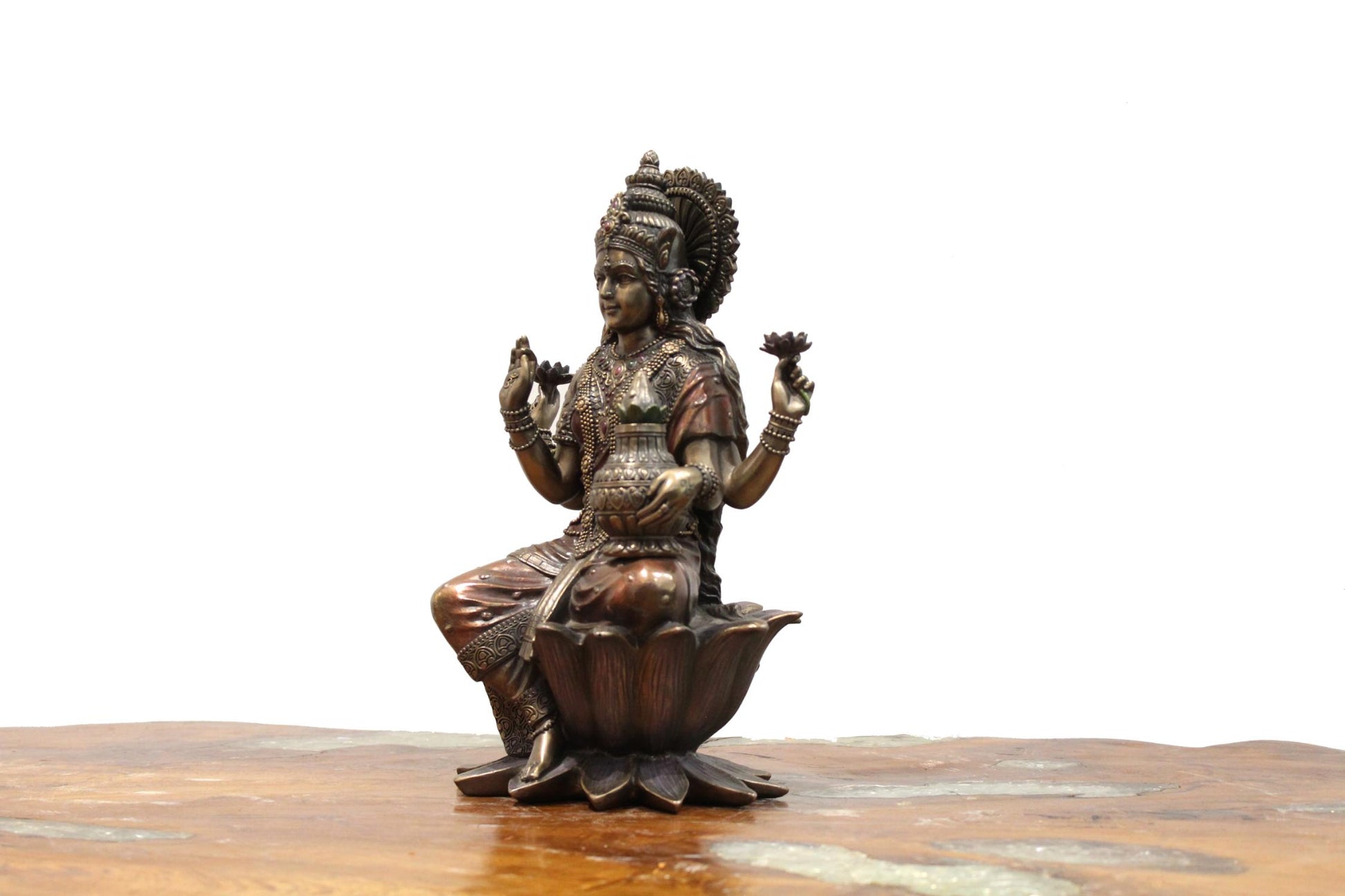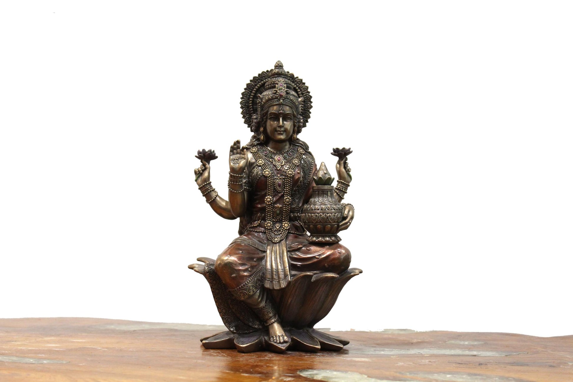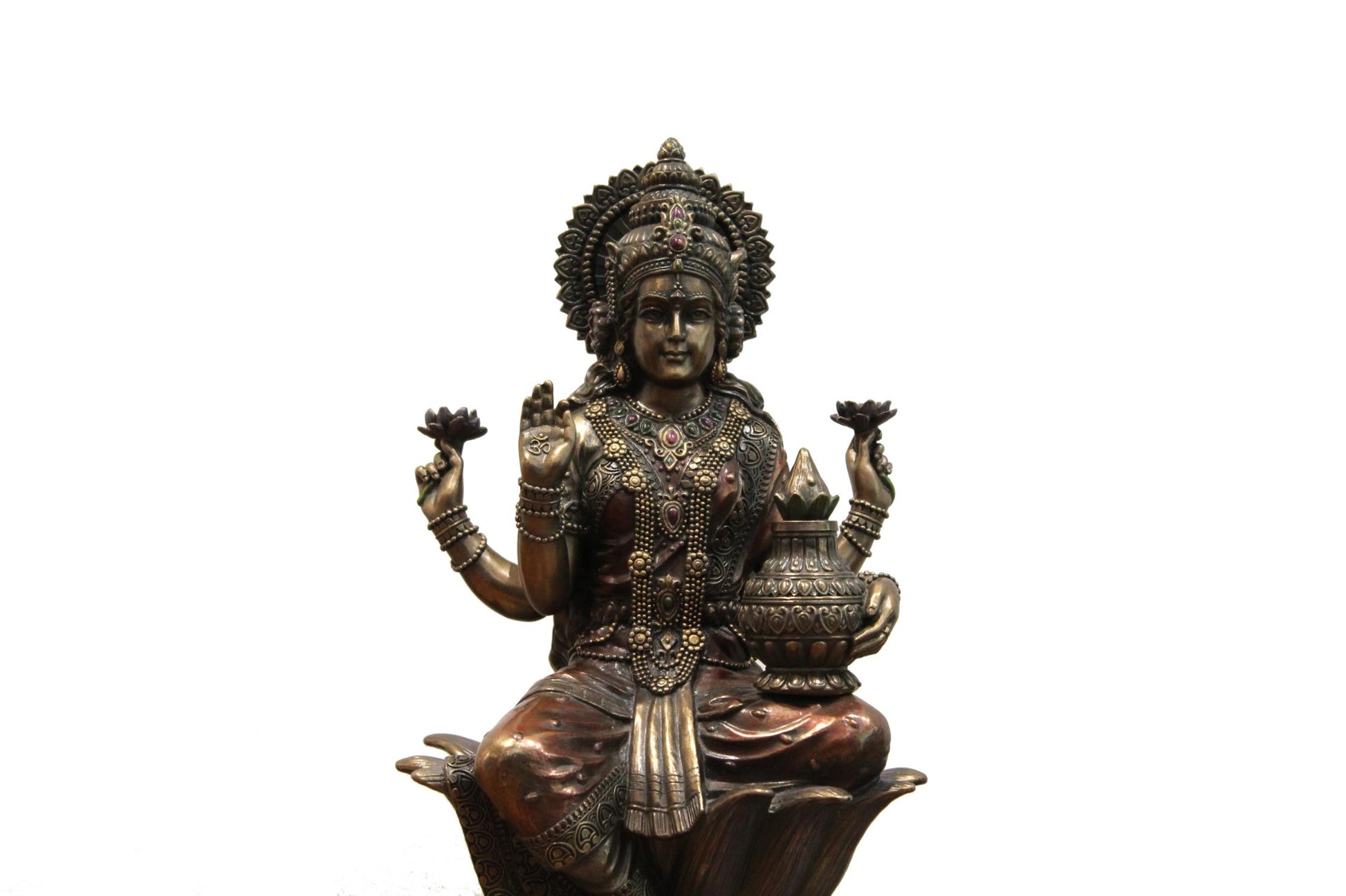 Introducing the Laxmi On Lotus, a symbol of beauty and prosperity. This exquisite piece features the goddess Laxmi seated on a lotus flower, representing wealth and enlightenment. Elevate your space with this sophisticated and timeless work of art.